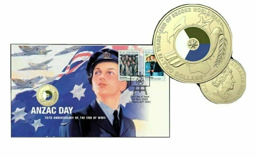 2020 ANZAC Day – 75th Anniversary of the End of WWII $2 PNC (Postal Numismatic Cover) – UNC | Limited Mintage of 6,500
