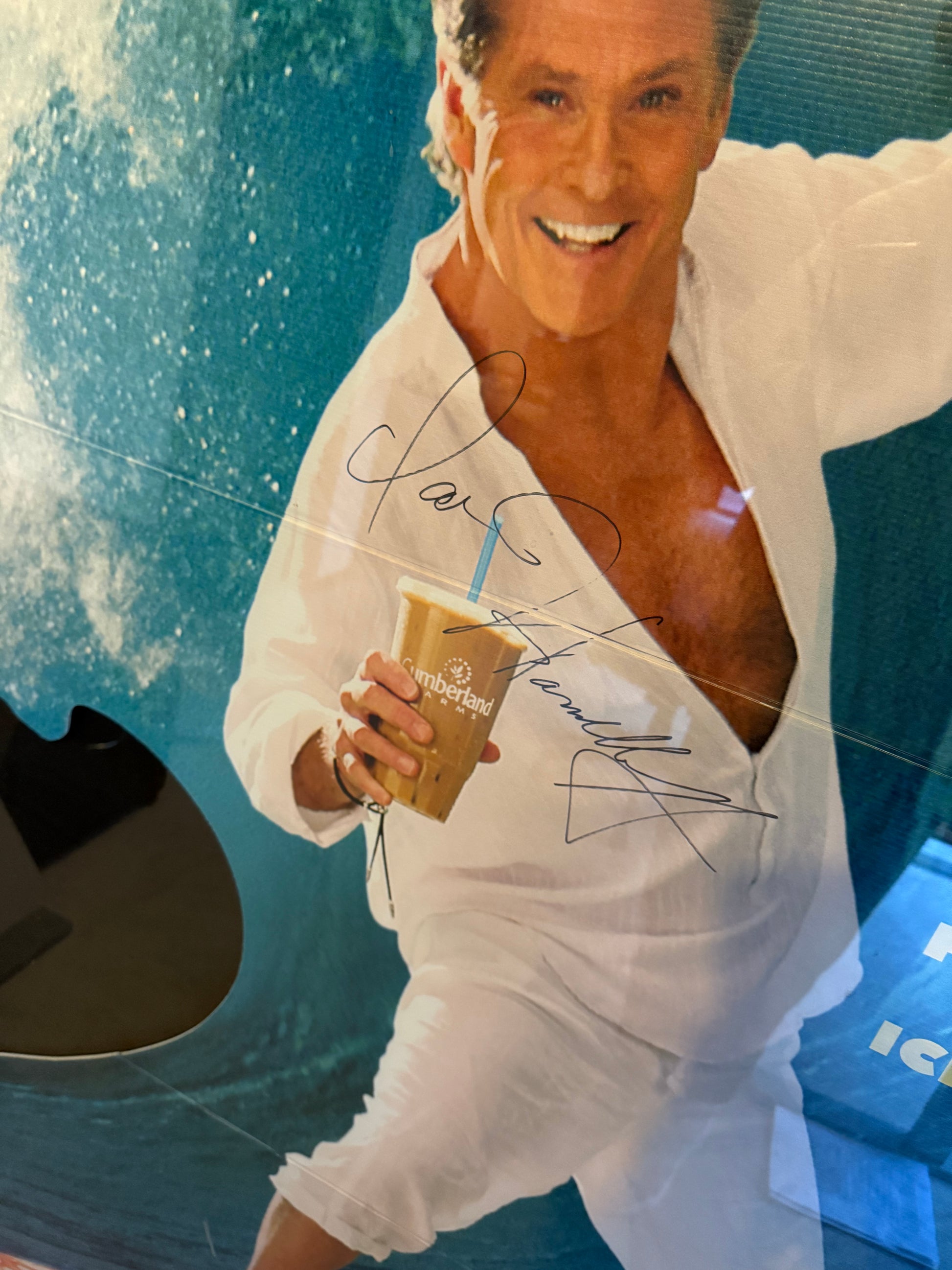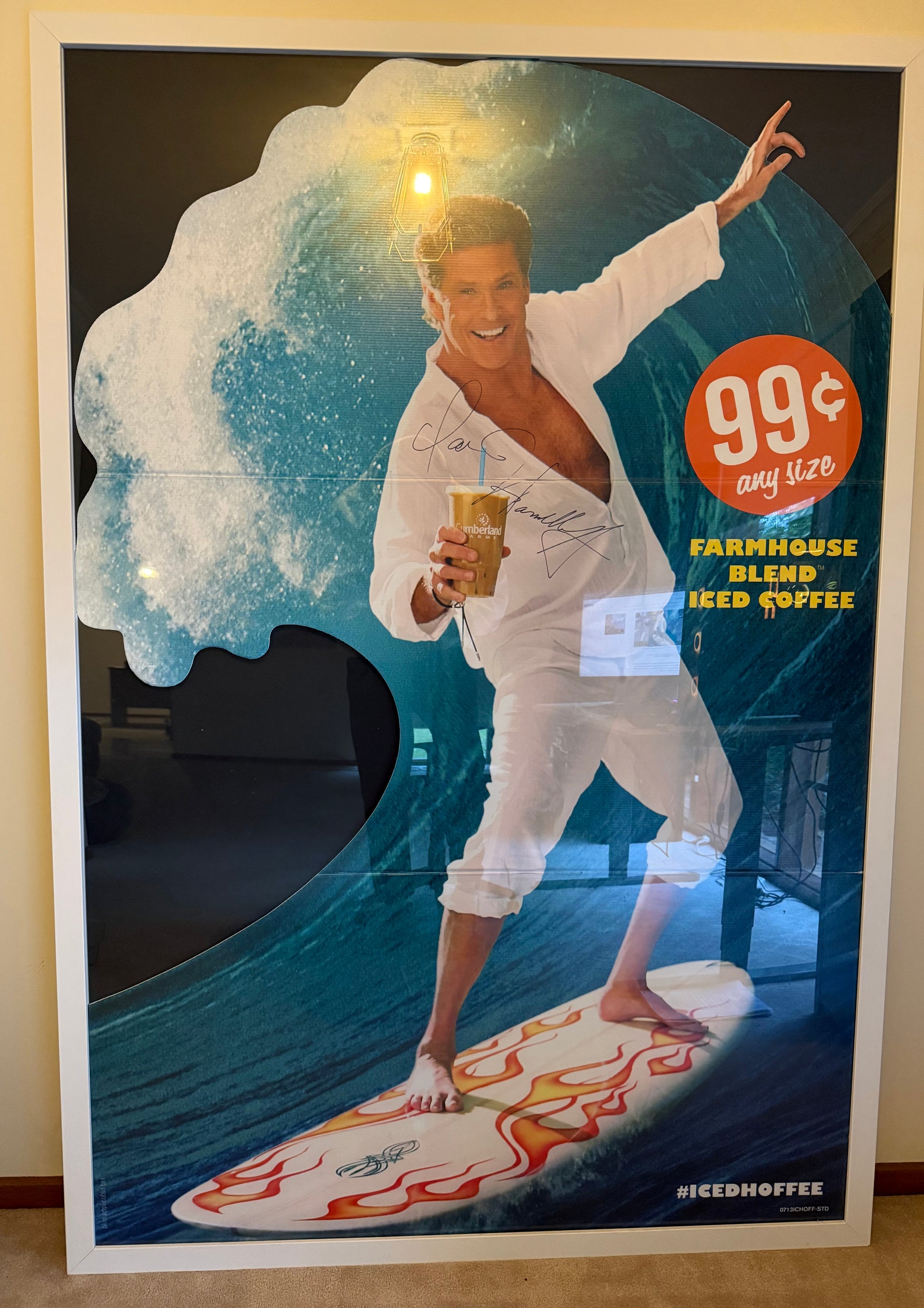 David Hasselhoff signed "Farmhouse Blend Iced Coffee #ICEDHOFFEE"