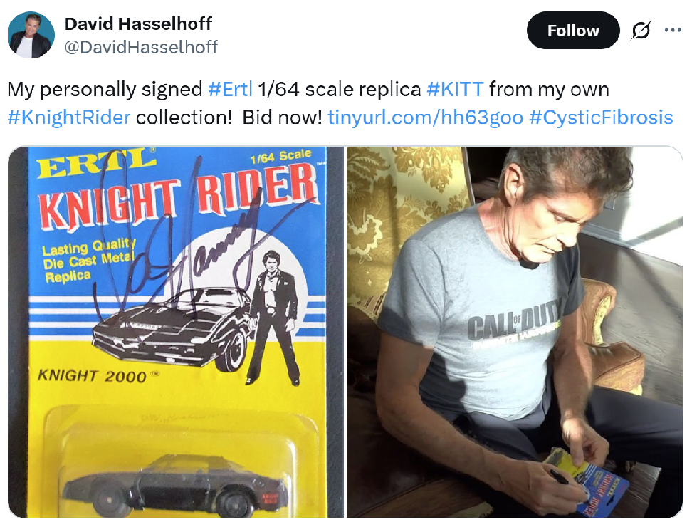 An extraordinary blend of nostalgia, celebrity, and vintage collectibility. Whether you're a fan of the Hoff, a Knight Rider enthusiast, or a pop culture collector—this signed K.I.T.T. is the ultimate showpiece.